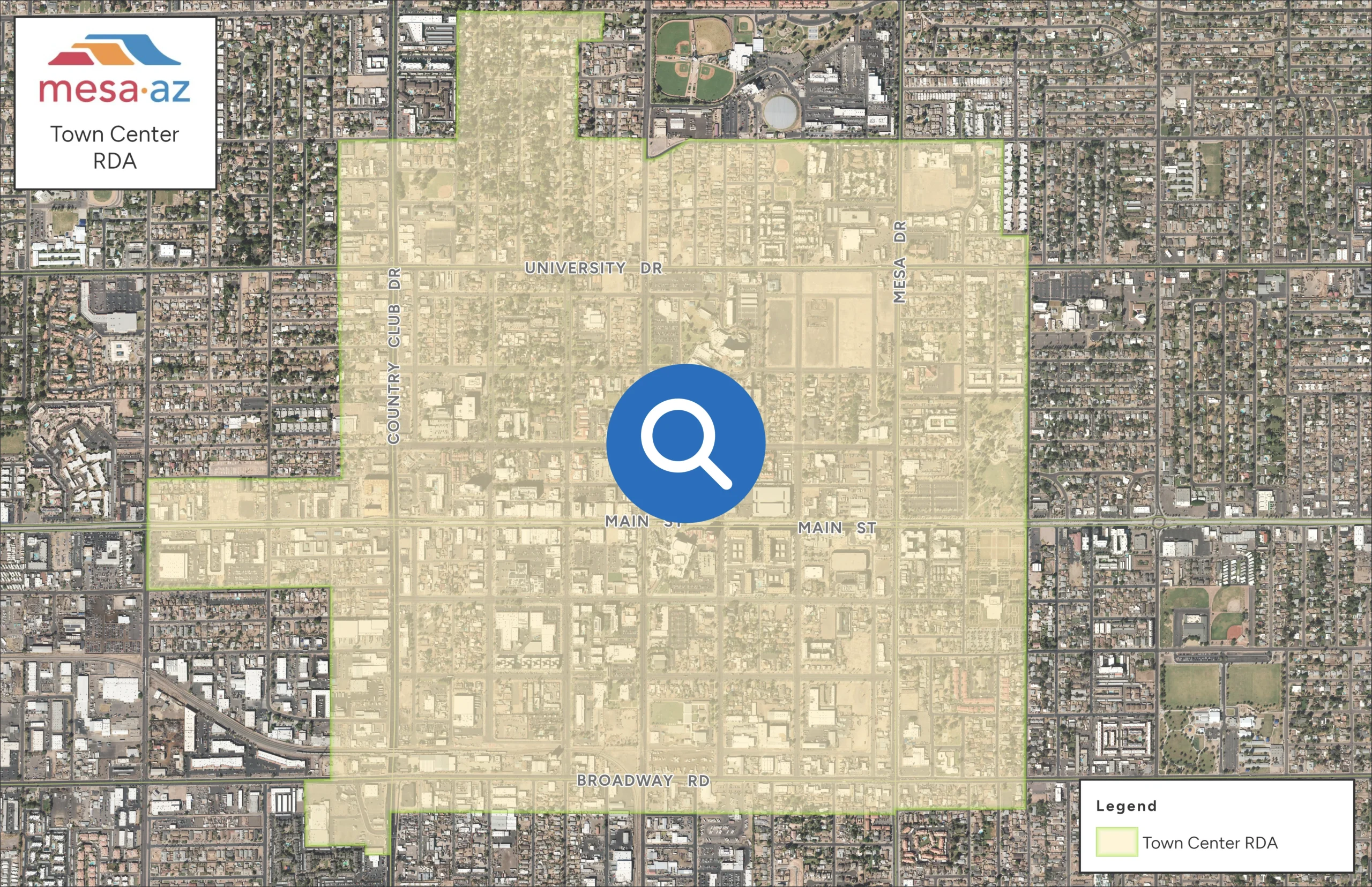 The Town Center Redevelopment Area sits at the heart of Mesa’s identity — the site of the city’s founding in 1878 and the anchor of its historic downtown. Guided by a long-term redevelopment vision established in 1999, Town Center has seen transformational investment that preserves historic character while advancing walkable mixed-use development, adaptive reuse, and cultural vitality. Today, downtown Mesa blends legacy with momentum, anchored by arts and cultural institutions and strengthened by transit connectivity to Phoenix, Sky Harbor International Airport, and major employment and education centers.