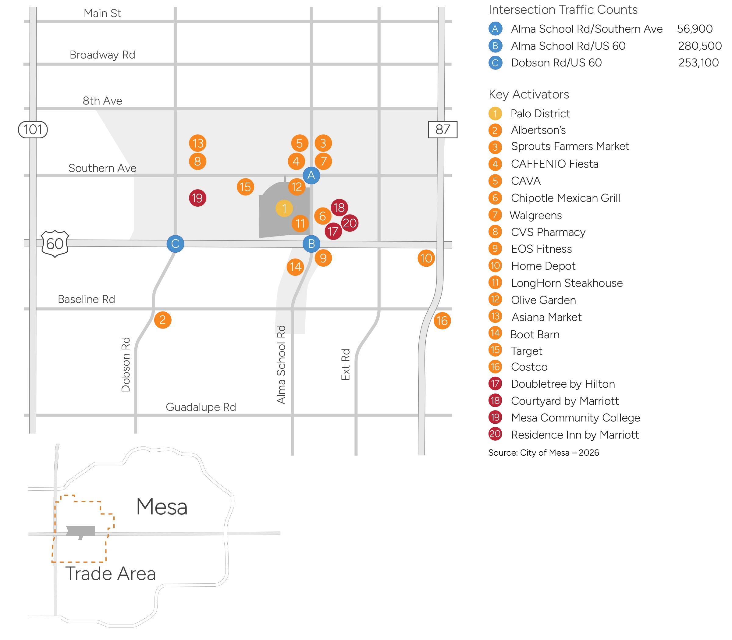 Demographic and Traffic Count Sources: ESRI, City of Mesa – 2026