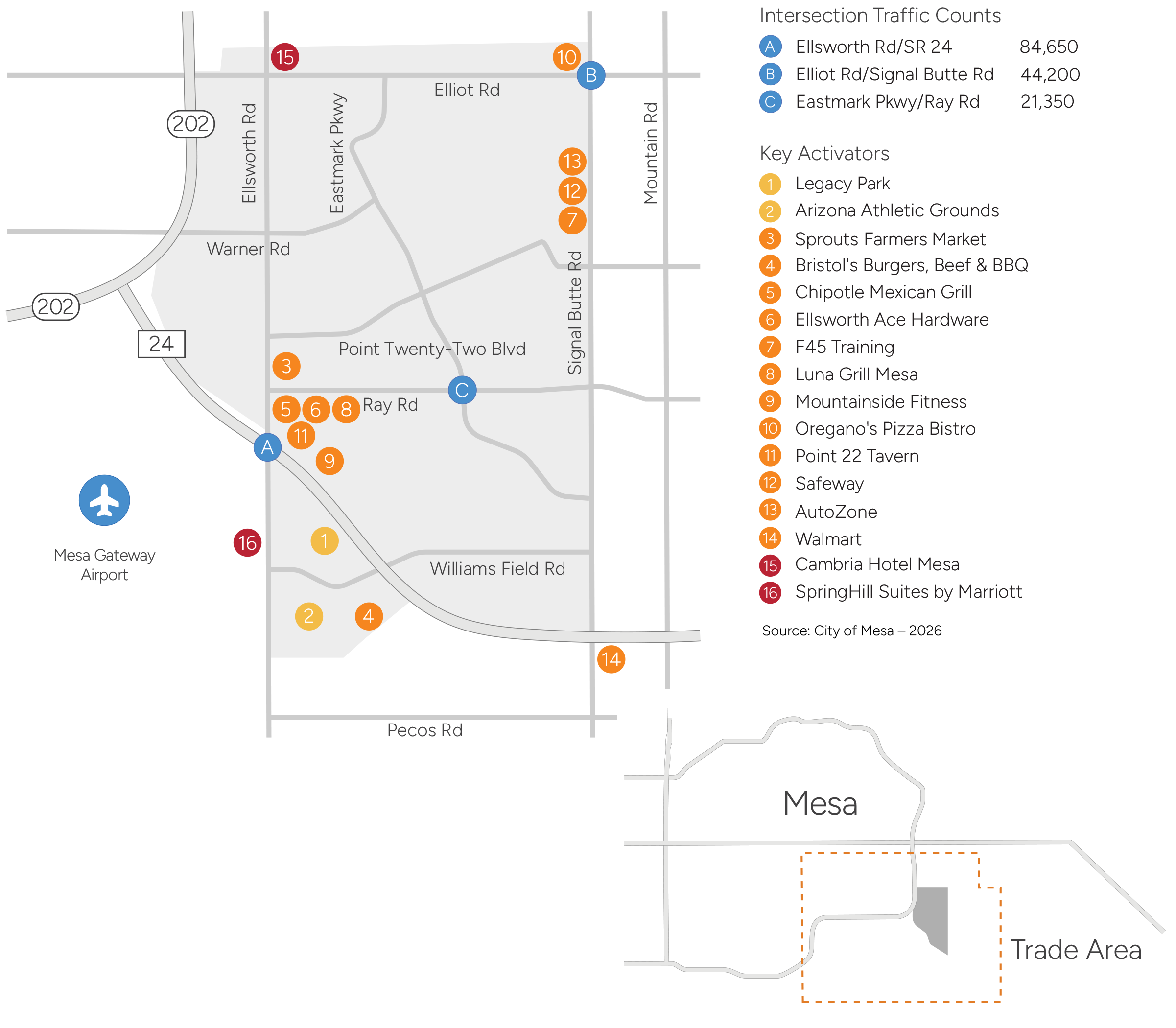 Demographic and Traffic Count Sources: ESRI, City of Mesa – 2026